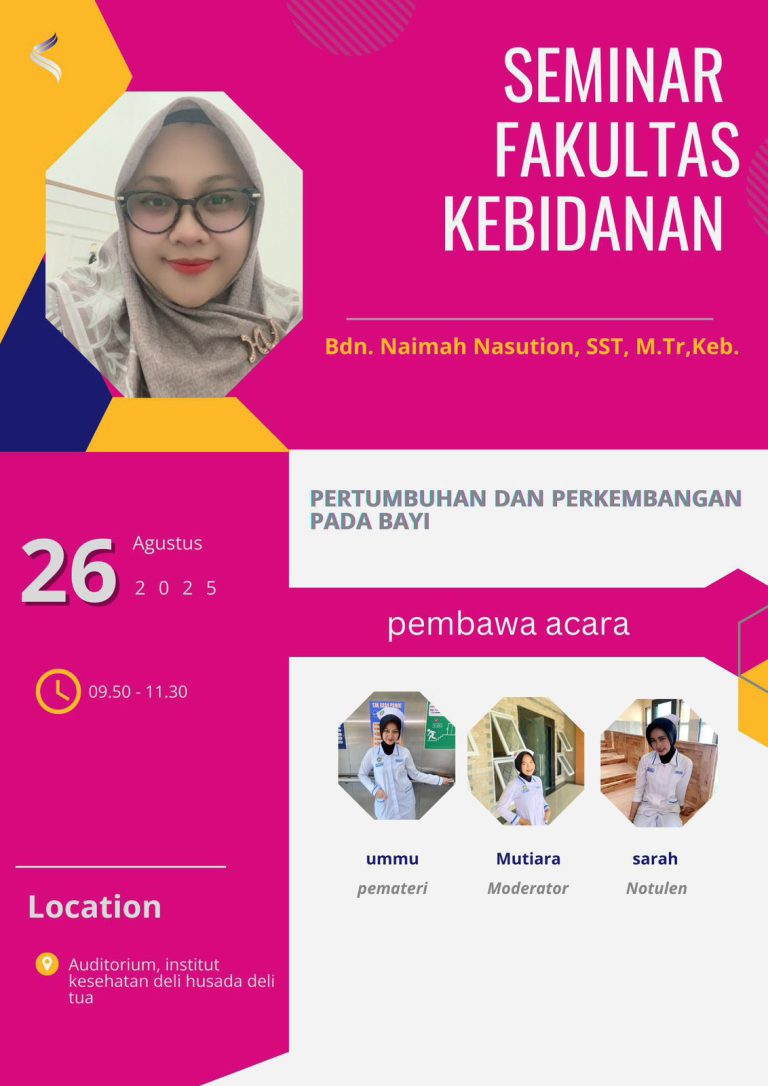 Fakultas Kebidanan Institut Kesehatan Deli Husada Deli Tua menyelenggarakan seminar bertajuk “Pertumbuhan dan Perkembangan pada Bayi” pada hari Selasa, 26 …